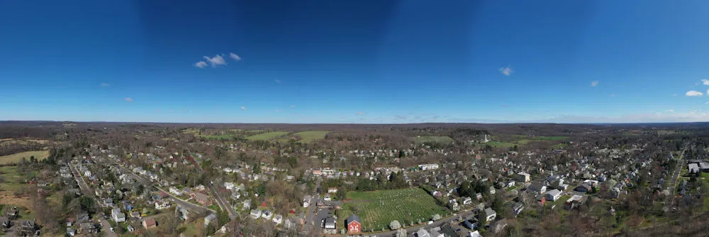 - Hopewell Borough Aerial Panoramas – Aerial panoramas looking over Hopewell from six different points along the town. Hopewell does look great! – The buildings glowing in the sun under the deep blue sky, and with the trees not yet filled in.